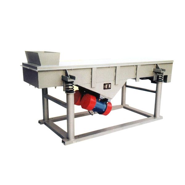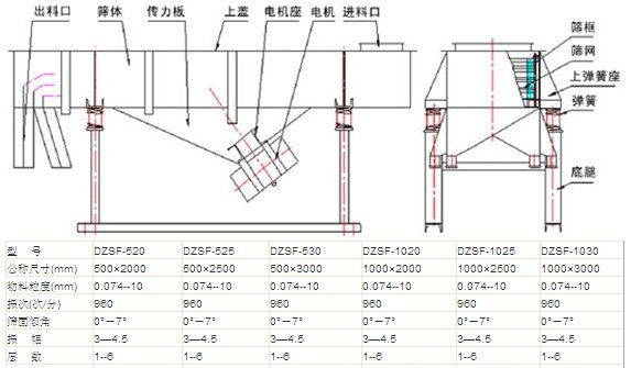 當(dāng)縱向安裝在篩體上的兩臺(tái)振動(dòng)電機(jī)兩端的偏心塊便產(chǎn)生額定激振力,其產(chǎn)生在橫向的激振力相互抵銷,其縱向的激振力通過傳振體傳遞到整個(gè)篩面上,從而使篩面上的物料受其激振力而在篩網(wǎng)面上向出料口方向跳躍運(yùn)動(dòng)。小于篩孔的物料通過篩孔落到下層,大于篩孔的物料經(jīng)連續(xù)跳躍后,經(jīng)出料口流出,由于篩分過程合理,可將物料經(jīng)振動(dòng)篩分級(jí)后,取得幾種不同顆粒的物料,完成物料的分級(jí)。